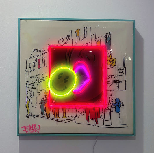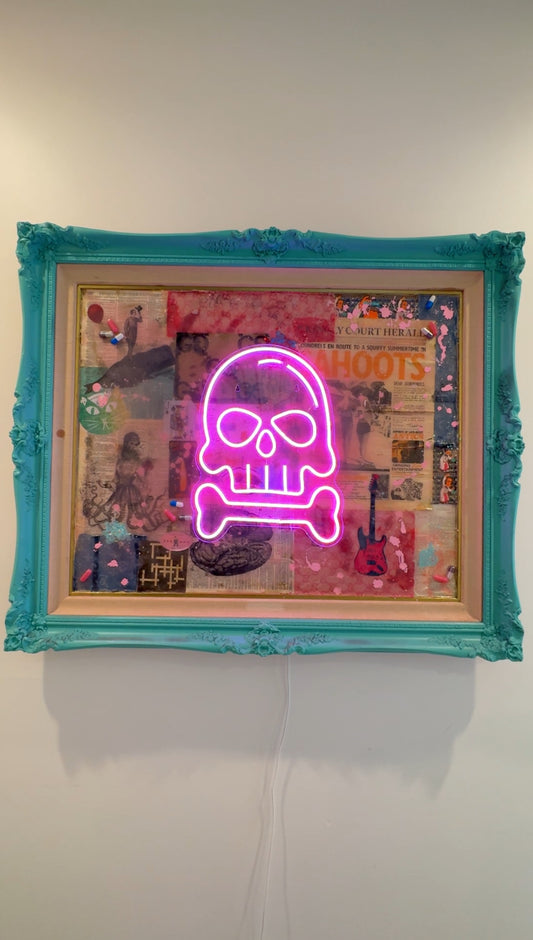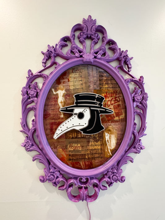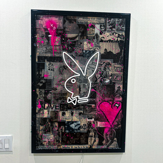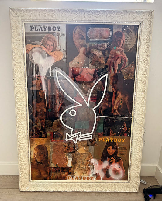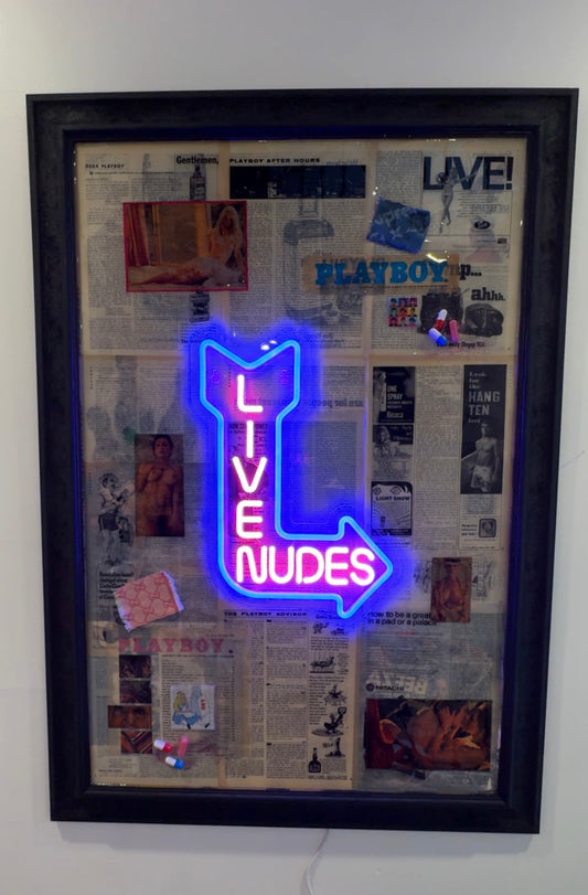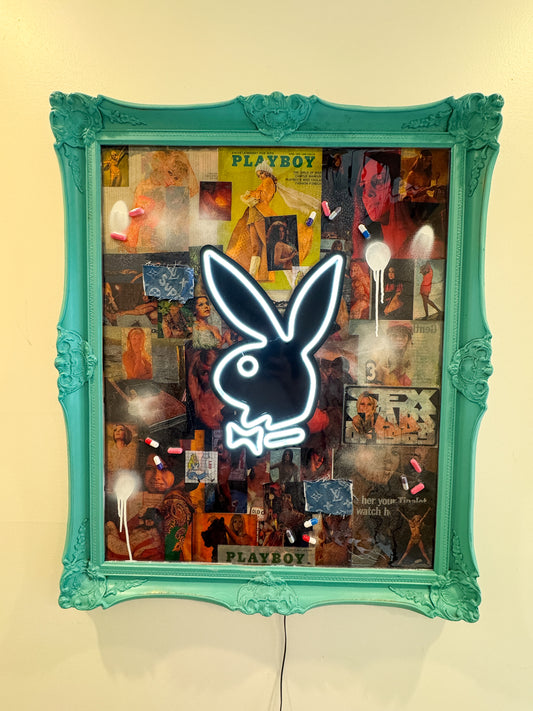 These works of art aim to tell a story. They incorporate images from vintage Playboy magazines, old polaroids from street markets in Europe, fabric from designer brands, and treasures found at Burning Man. All mixed media is preserved in museum grade epoxy which lays the backdrop for the LED imagery as the focal point.